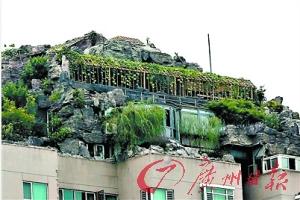 ▲位于北京海淀区人济山庄B座楼顶的“人间别墅”,有假山有亭台楼阁。