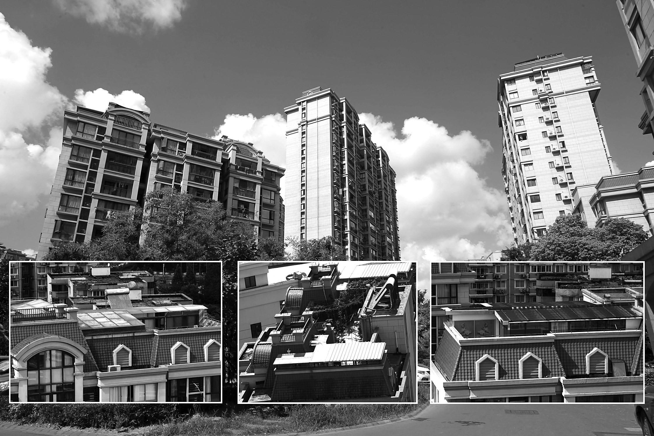 在“大上海紫禁城”小区里,几乎每幢大楼的楼顶都或多或少存在“种房”现象。