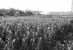 闲置的地块上长满了庄稼。记者 高爱平 摄