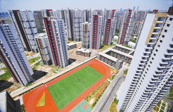 开学在即,南京市四大片区保障房首批14所学校将率先迎来新学生,包括幼儿园、小学、中学在内的学校全部属于公办,部分中学由一中、金陵中学、南师附中等名校统一办学。图为岱山片区保障房内的新校园操场。余萍 摄