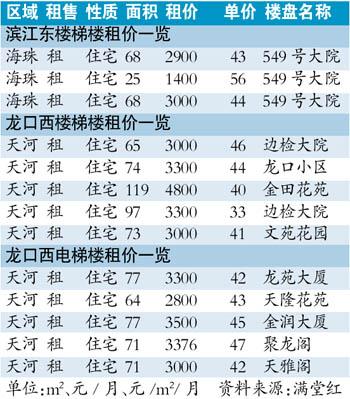 而周边楼龄较新的电梯大两房单元,如租赁最活跃的保利中辰广场,目前电梯大两房租金约4500~5000元/月,楼龄较长的电梯大两房单元租金约为4000元/月。因此,如果张小姐出租龙口西6楼楼梯楼,在周边租住电梯楼,每月月租要加500~1500元左右。