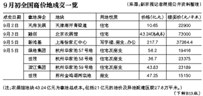 对于9月上旬这股土地热,上海易居房地产研究院副院长杨红旭认为,近期高价地密集出现,在供应端首先与地方政府推优质地块有关;在需求端则是因为房企手持较充足现金,加大土储力度,优质地块本身又加剧了房企的竞争。