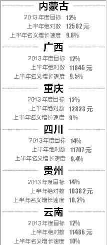 2013年上半年部分省市区
