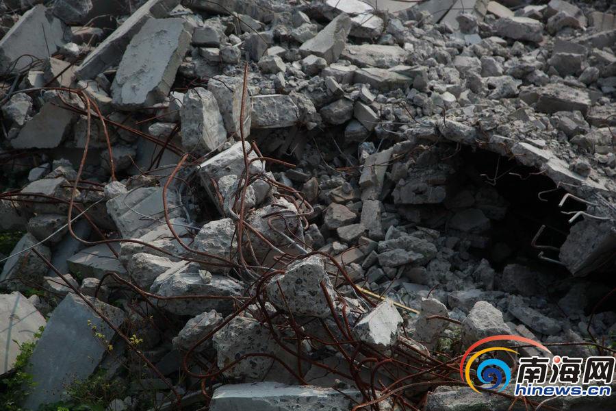 9月23日下午,南海网记者在龙华区海垦街道友谊路龙华法院新综合楼后的强制拆违现场看到,其中一栋未完工的9层半违建已经倒塌,大型机械正在对另外两栋未完工的9层半违建进行拆除。