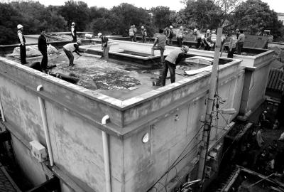 上午8时,强拆工作开始。为保证违建下面一层的房屋结构不受损,现场进行施工的拆除公司根据房屋的年头、构造等制定了专门的拆除方案。为了确保周边居民房屋不受影响,拆除工作将非常谨慎,预计5至7天可以拆除完毕。