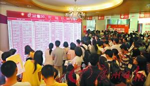 国庆楼市外热内冷,花都某楼盘选房区聚集不少选房市民。记者邵权达 摄