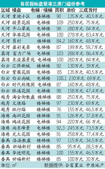 合富置业市场经理梁燕明表示,今年中秋佳节与“十一”黄金周假期较为接近,有心近期出手的买家普遍都存有等到黄金周到一手市场“格格价”的想法。从成交结构上分析,眼下超过九成都是“刚需”买家,成交物业以天河、海珠、越秀、荔湾等市中心区域70~90平方米的两房和小三房为主。