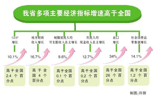 初步核算并经国家统计局评估审定,前三季度全省地区生产总值2224.57亿元,比上年同期增长10.1%。其中,一季度增长10.5%、二季度增长10.2%、三季度增长9.3%。按三次产业分,第一产业增加值538.39亿元,增长6.4%;第二产业增加值622.70亿元,增长9.8%;第三产业增加值1063.48亿元,增长12.0%。