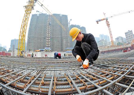 近日,望城区高塘岭廉租房小区建设工地上,工人们忙着绑扎钢筋、搬运砖块,一片繁忙的劳动景象。 王志伟 摄