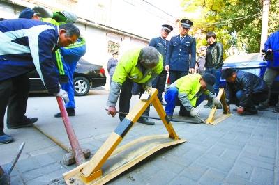 北京安定门西大街70余个胡同“封路”地锁被拆