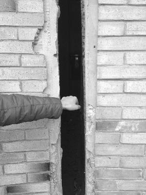 8号楼1单元与2单元之间正常的空间距离在80厘米左右,一个成年男人站进去还绰绰有余,但2单元与3单元之间的空间距离却只能伸进一条胳膊。