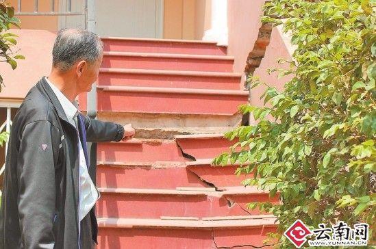 滇池路采莲郡小区地基下陷 楼梯跟建筑主体脱离