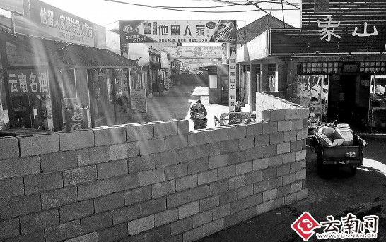 “在这样商户密集的市场附近,竟用砖墙将路两头封堵起来,这叫什么回事?里面有这么多的餐馆,如果发生火情咋个办?消防如何进去施救?”17日中午,丽江市民向晚报记者电话反映。