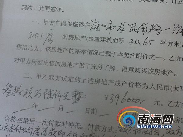 二手房的买房者提供的房地产买卖契约。(南海网记者税博摄)