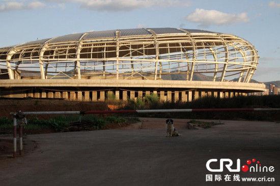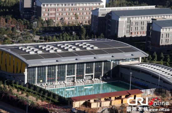 呈贡大学城的一个体育馆,不远处是云南省广播电视大楼。
