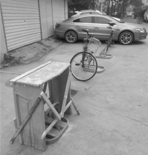 曹先生说,这些地锁都是居民们擅自装上的,有手动简易型的、还有电动高科技型的。而地锁的形态也是各式各样,有三角形的、有拉链条的,甚至还有用上自行车的。总之为了抢车位,稀奇古怪的地锁这里都能找着。