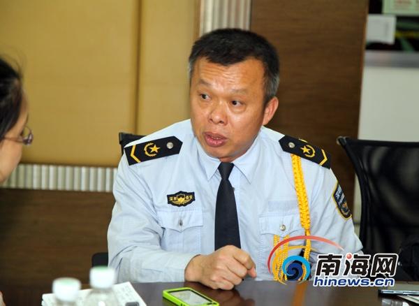 今年49岁的刘阳仁来自海南澄迈县新吴镇,在深圳保安行业是个“名人”。从一名退伍军人到普通的保安员,再到深圳市保安服务公司的中高层管理干部,27年一步一个脚印,还破格获得深圳户口和福利住房。(南海网记者 李晓梅 通讯员 王家专 摄)