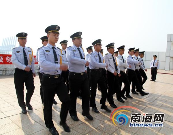 深圳保安服务公司的盐田港保税区的保安正在训练,澄迈籍保安占了很大部分。(南海网记者 李晓梅 通讯员 王家专 摄)