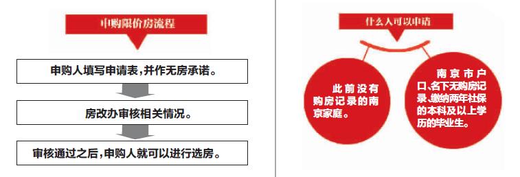 对于首次置业的南京家庭,申购限价房流程是这样的:申购人前往丰富路127号房改办1楼4号窗口,填写申请表,并作无房承诺。房改办将据此进入南京住房数据库,审核相关情况。审核通过之后,申购人就可以进行选房。购房人可以使用商贷,也可以使用公积金。