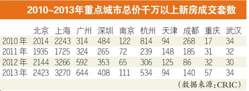 据国家统计局公布的去年12月70个大中城市住宅销售价格变动情况,四个房价已经高企的一线城市房价涨幅依然“拔得头筹”,而有数据显示,北上广深成交的“千万豪宅”数目在近几年稳中有升,豪宅市场“抗周期”能力明显较强。