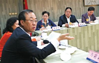 一人大代表在座谈会上发言。昨日,部分市人大代表与全国人大代表座谈。 新京报记者 浦峰 摄