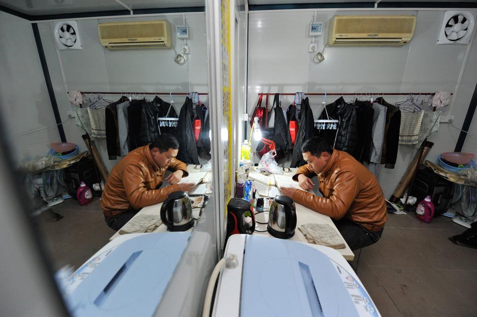今年的大学应届生刘辉是另一个尝鲜者。他在网上看到集装箱房低价出租的网帖后,联系上李耀。一番交谈后,刘辉在空地租了一间房试住。“第一天晚上,朋友们走了以后,我躺在床上,眼泪刷就下来了。”刘辉说,他感到很委屈,“为什么会为了省几百元,就让自己躺在柜子里?”