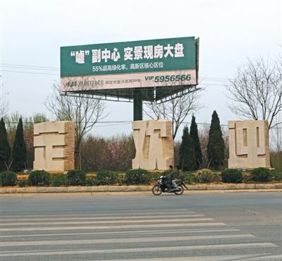 4月1日,保定市区内的楼盘宣传广告打着“副中心”的字样。新京报记者 秦斌 摄