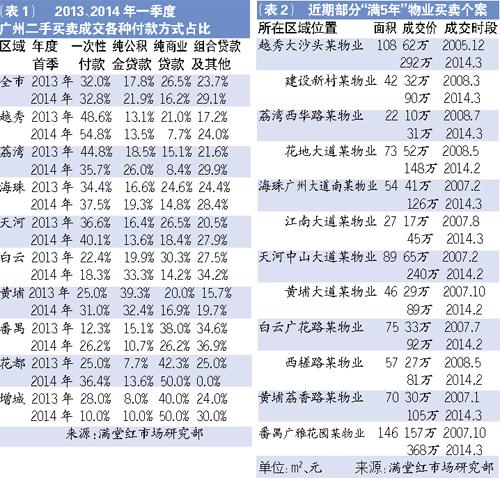 受房贷仍然偏紧影响,一季度一次性付款的比例上升至四成,较2013年上半年的三成左右有所上升。其中越秀、荔湾、天河、海珠中心四区一次性付款的比例基本接近五成。