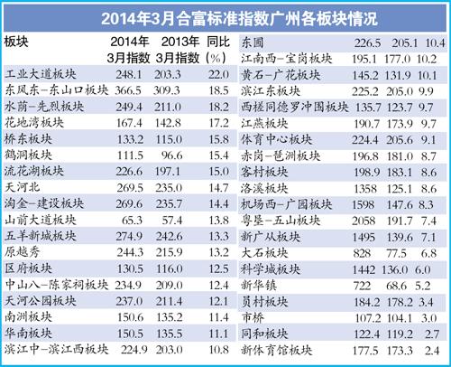 本报讯 (文/表:记者王荔珏)日前发布的合富标准二手住宅价格指数显示,2014年3月合富标准二手住宅价格指数(广州)为182.6点,环比2014年2月上涨0.1%,同比2013年3月上涨11%,较基期2008年1月上涨82.6%,较2013年12月微涨0.9%,涨势明显趋缓。合富标准指数监测“阳光家缘”二手住宅网签数据显示,2014年一季度广州二手住宅网签6357套、54.3万平方米,环比2013年四季度下降16%,同比2013年一季度下降45.8%。总的来说,一季度广州二手楼市交投不活跃。