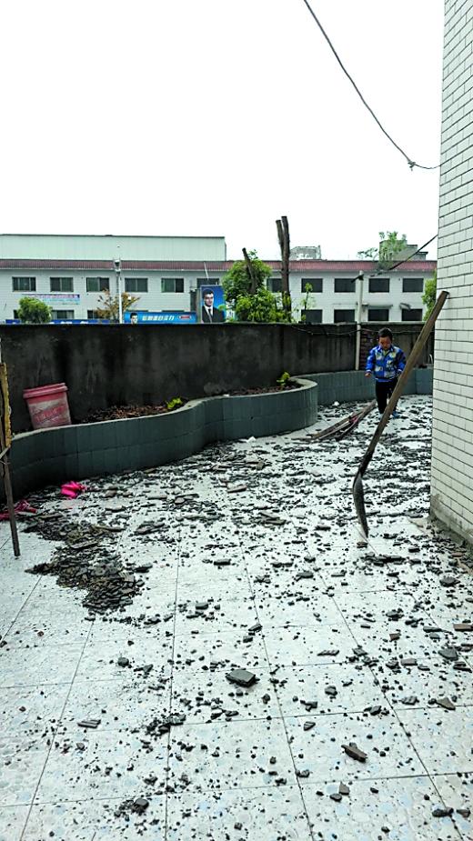 “你看嘛,就是这些,前晚吓得我不敢睡觉。”蒋女士说,她卧室靠阳台,伴着雷雨,她听到一阵噼里啪啦的响声,她知道一定是外墙砖开始掉了,整个过程大约持续10分钟。