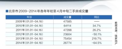 受信贷持续收紧、自住型商品房和新房市场分流等多重因素影响,今年的二手房市场和往年相比显得较为“惨淡”,从年初到4月16日,北京二手房成交26774套,与去年同期相比大幅下降64.5%,从近五年同期的成交量情况来看,仅比2012年同期成交量略多,与其他年份同期成交水平相比存在较大差距。业内称,若信贷不放松,则随着新建住宅供应的增加以及可能愈来愈多的自住房上市,二手房价格可能在二季度出现加速下调的可能性。