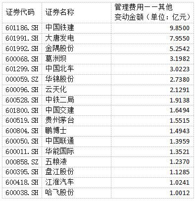 同花顺数据显示,2012年A股上市公司业务招待费排名第一的中国铁建(601186.SH),排名第二的中国交建(601800.SH),排名第五的葛洲坝(600068.SH),排名第六的中国北车(601299.SH),排名第十一的金隅股份(601992.SH),均未公布2013年“管理费用—业务招待费”科目。令人玩味的是,上述企业“管理费用—其他”科目与2012年相比大幅增长。其中,中国铁建增幅居首为9.85亿元,金隅股份增长5.25亿元。