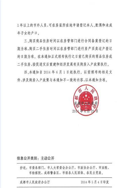 一、自2014年6月1日起,停止执行促进灾后重建和经济发展有关购房入户政策。