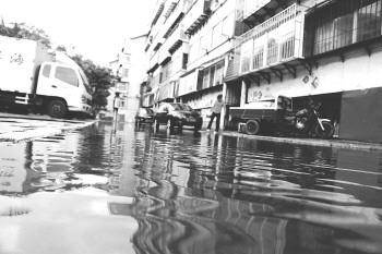 家门口的街道变成了河,只能绕路而行。 本报记者 韩逸 摄