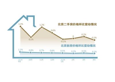 昨天,国家统计局发布70个大中城市住宅销售价格。从更能反映价格变动最新情况的环比数据看,无论是新建商品住宅还是二手住宅,价格环比上涨的城市数量均比上月减少。其中,北京4月份新建商品住宅价格环比涨幅收窄至0.2%,二手房价格环比下降0.2%,创26个月以来最大跌幅。