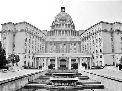 这幢1800年投入使用的欧式古典建筑,主料为白色大理石,建筑庄严、典雅、朴素,有一个标志性的3层大圆顶,白色外墙。作为美国政府的代表,这幢白色穹顶建筑常出现在中央电视台的国际新闻画面中,在民间有时会被误认为是“白宫”。
