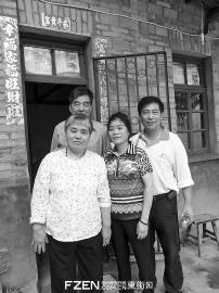 林其章(右一)夫妇和受灾的王依钗(左一)夫妇在老屋前合影。