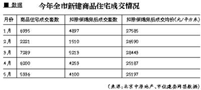 价格方面,全市新房住宅成交价保持平稳。北京中原统计数字显示,扣除保障房,4月商品住宅均价25187元/平方米,5月为25197元/平方米。