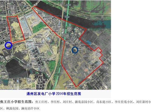 注:红框内区域为通州区发电厂小学2014年招生范围 滨江帝景即在左侧区域