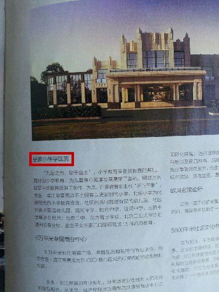 2012年滨江帝景的宣传材料中明确写有“史家小学学区房”字样