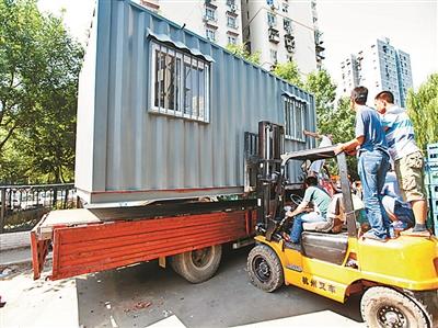 一段时间来,马家堡西里一社区内一些居民用集装箱搭建违章建筑,用于出租或者自己使用。昨天上午,街道、城管等部门联合将小区内十座集装箱搬走。