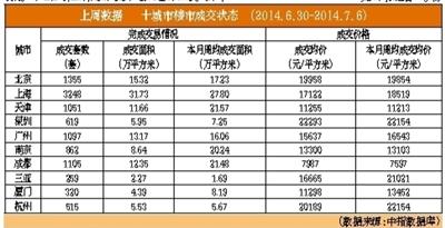 上周(6月30日-7月6日)商品住宅成交套数排名
