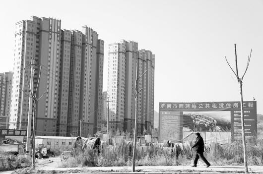 一方面,解禁楼市限购政策,让市场的归市场;一方面,加大保障性住房建设力度,让政府的归政府,可能在某种程度上更有利于房地产业的健康平稳发展,更有利于实现“住有所居”的目标。图为预计今年10月即可交付入住的济南市西蒋峪公租房小区。