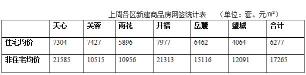 上周长沙六区新房住宅网签1320套 均价重回"6"字头
