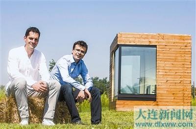 8月9日,在匈牙利中部城市凯奇凯梅特,建筑设计师古陶伊·马加什(左)和他的项目经纪人拜雷尼·米兰坐在“水房子”前。