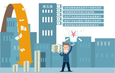 昨日,湖南省住房和城乡建设厅印发《关于促进全省房地产市场平稳健康发展的意见》(以下简称“湘五条”),明确规定将从政府回购普通商品房用于保障性房源、异地购房者可申请公积金贷款、住宅产业化建设项目资本金监管减半等五方面促进湖南省房地产市场平稳健康发展。