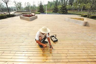 目前公园主体建设已完工,剩余照明、垃圾箱等设施也将于本月底全部完工,10月正式对市民开放。据介绍,今年朝阳区围绕APEC环境建设工作,拆迁腾退太阳宫桥东北角北京城建道桥吊运分公司、东北四环望京六公主坟村、京承高速来广营北湖渠村、京承高速沿线东侧来广营段、京承高速崔各庄奶东村、机场南线黄港桥段六片重点区域。截至目前,腾退区域占地面积约223万平方米,规范整治牌匾、标识、户外广告近2000块,拆除各类违法建设共计246.3万平方米,并对奥体中心区、长安街以及延长线、东北三四环沿线的建筑物进行了外立面粉饰。