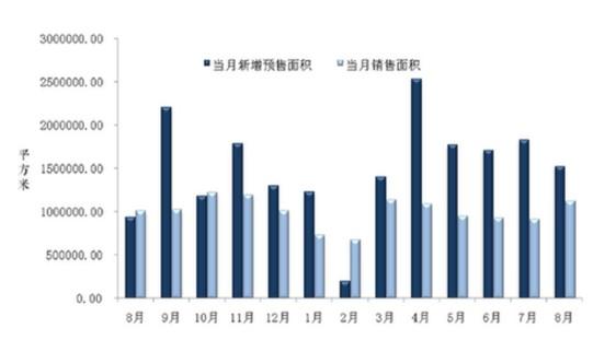 新增预售面积和销售面积对比图 来源:浦江(中国)