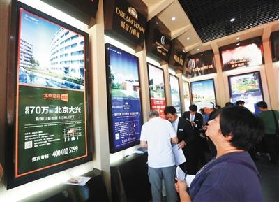 昨日,参观者在北京房展会上浏览项目信息。罗伟 摄