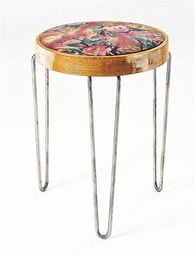 靠背和木头腿取消,穿上金属高跟儿,重新包上花布,靠背椅变身时髦三脚凳 (设计师:吴为 刘轶楠)